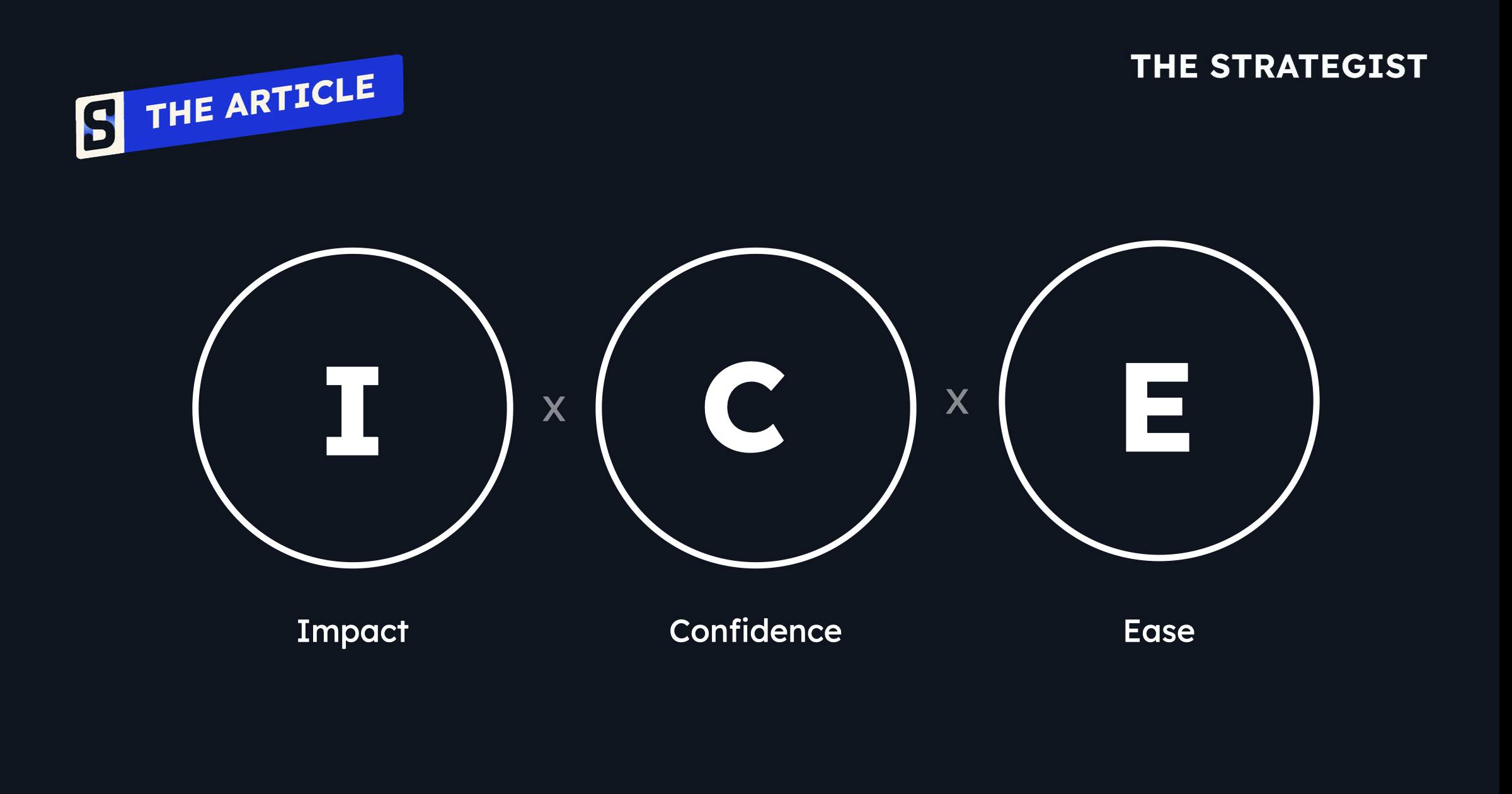 ICE Scoring Model ทำงานผ่านตัวแปรสามตัวที่ต้องนำมาคูณกันเพื่อให้ได้คะแนนรวม โดยเราสามารถให้คะแนนในแต่ละหัวข้อตั้งแต่ 1 ถึง 10 เพื่อนำมาหาข้อสรุปที่จับต้องได้