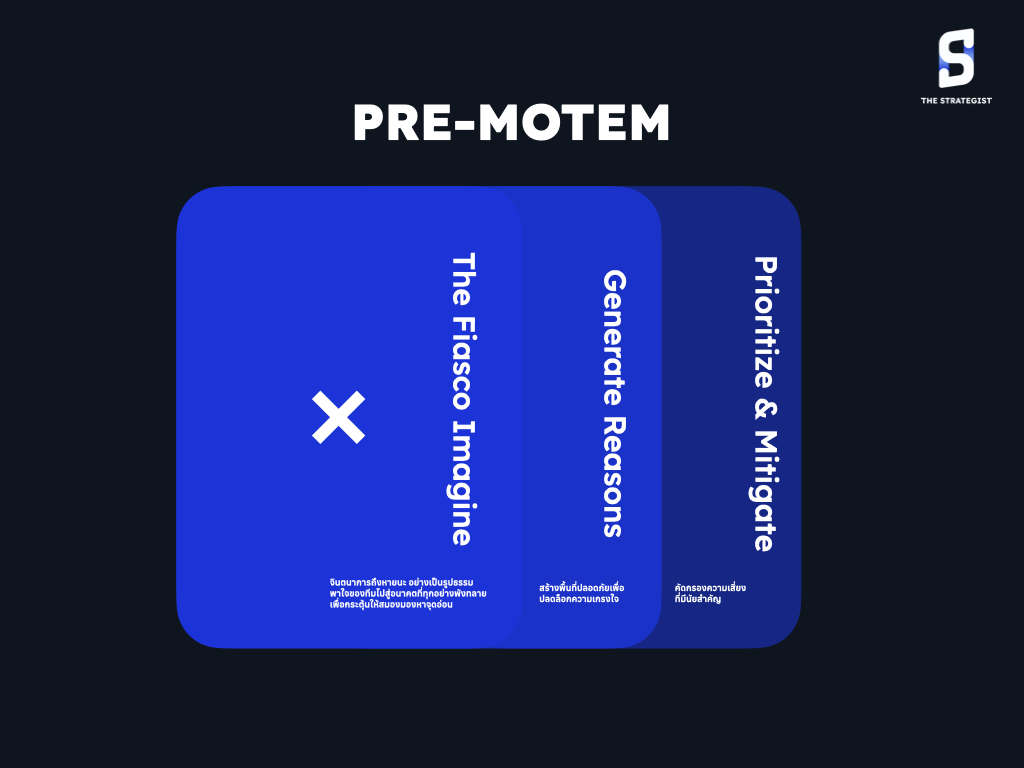 การทำ Pre-Mortem จึงไม่ใช่การมองโลกในแง่ร้าย แต่มันคือการสร้าง “ภูมิคุ้มกันทางกลยุทธ์” ผ่านกระบวนการที่เฉียบคมเพื่อหา Friction ที่ซ่อนอยู่ในนั้น โดยวิธีการก็คือ